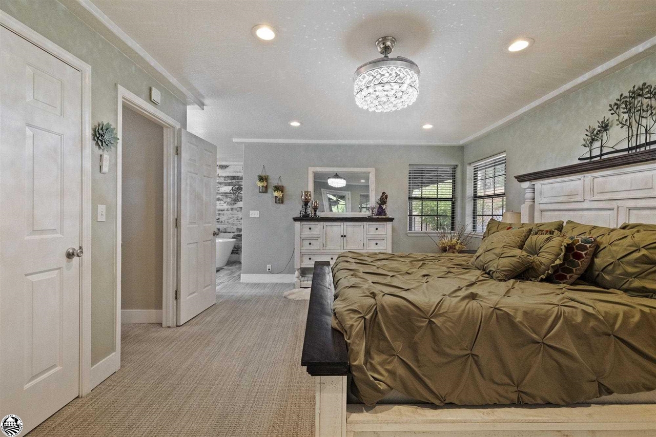 PRIVACY AND SERENITY WITH VIEWS!! No updates needed here, you can move right into this gorgeous home on acreage with a pool. YouaEUR(tm)ll love the massive great-room that has a wall of windows to capture long range unobstructed VIEWS across the valley to the ridge and beyond! ThereaEUR(tm)s also not another home in site & mostly one level living. Lots of eye candy here with an Urban Farmhouse vibe featuring open beamed vaulted ceilings, acacia wood floors, waterfall quartz kitchen counters, stainless appliances, gas cooktop, cozy stone fireplace with woodburning stove and custom tile bathrooms with solid stone counters. The master suite features private patio access, spacious walk in closet, master bathroom with dual stone vanity, soaking tub, custom tile shower and closeted toilet. Newer washer and dryer in the spacious laundry room which also has a view. YouaEUR(tm)ll be inspired by the multiple outdoor spaces from the fenced yard with in ground pool and lawn, shaded back porch with fruit trees and lovely flowering landscaping for color in every season and the covered front porch with outdoor dining area to enjoy the sunsets at dinner. All bedrooms are on the main level and are very spacious. The back bedroom has a walk in closet with access to the outside. Need room for a den or office? We